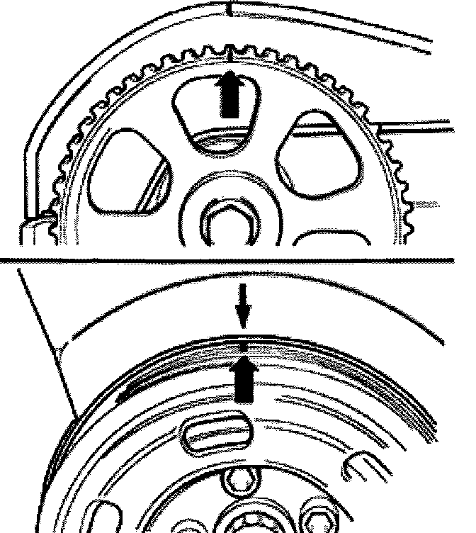 - Set camshaft sprocket to TDC No. 1 cylinder by turning the crankshaft. Mark on camshaft sprocket must align with mark on cylinder head cover.