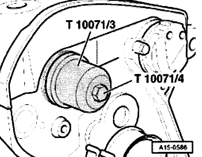 - Press seal in onto stop with press sleeve T10071/3 and bolt T10071/4.