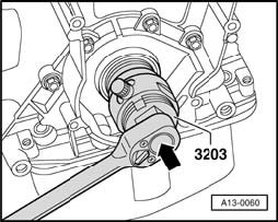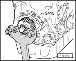 - Remove toothed belt crankshaft sprocket. To do this, lock toothed belt gear using counter support 3415.