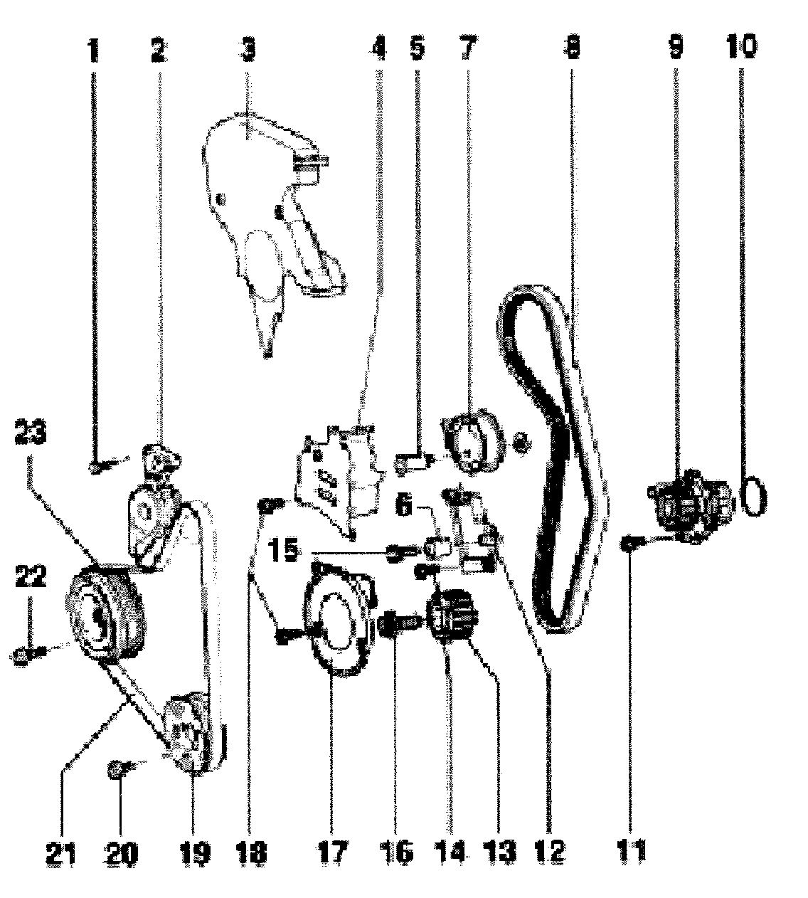 ^ Note position when installing toothed belt, Removing, installing and tensioning toothed belt