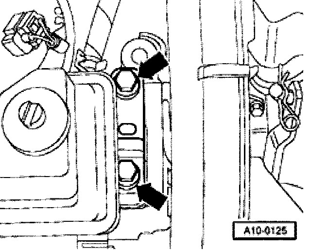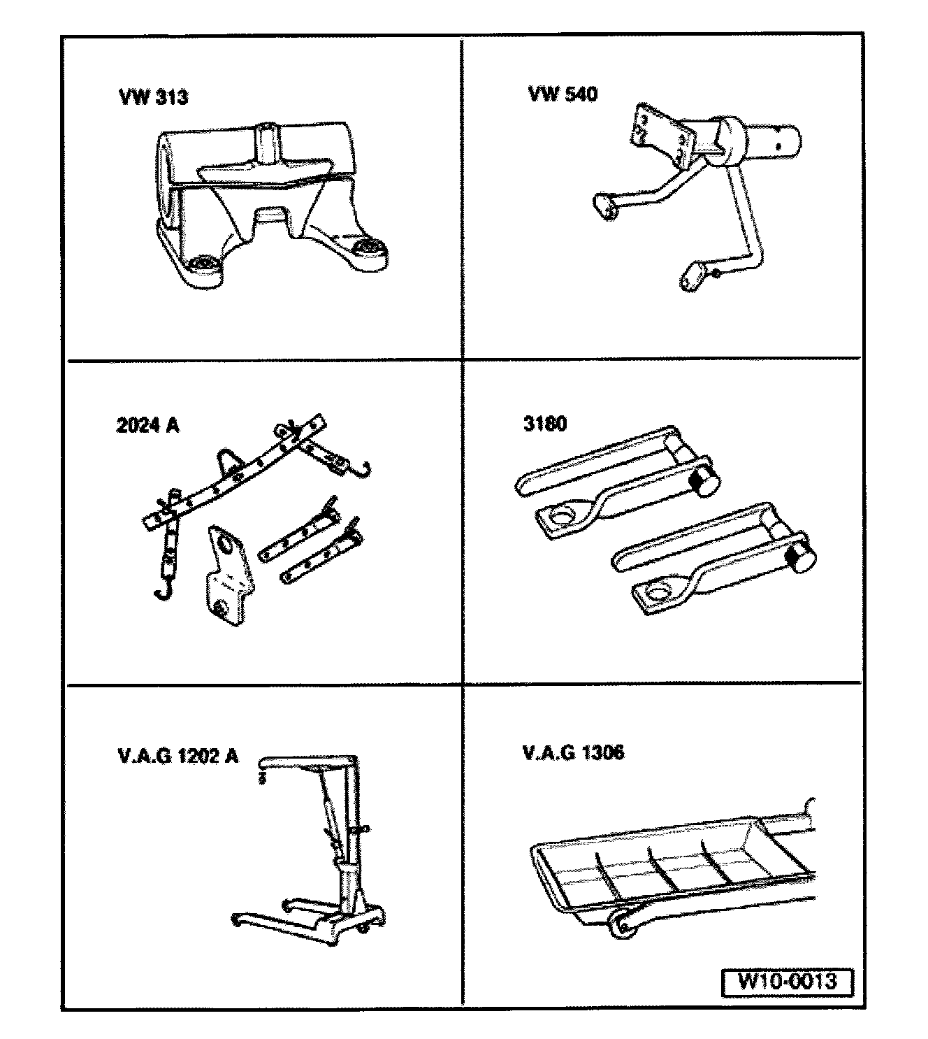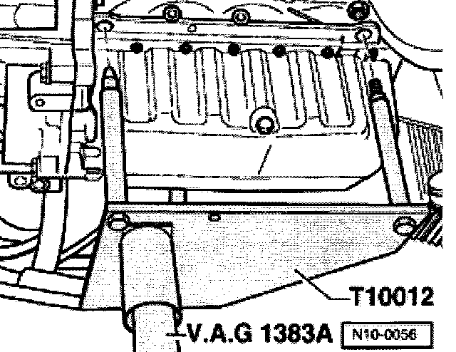 - Lift engine and transmission slightly using engine/transmission jack V.A.G 1383 A.
