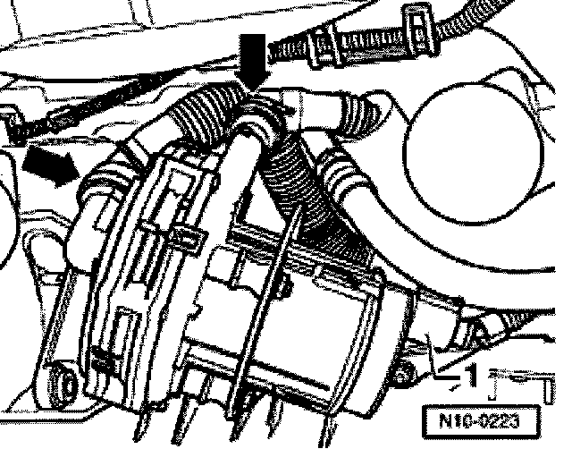 - Remove intake hose between air mass meter (G70) and turbocharger.
