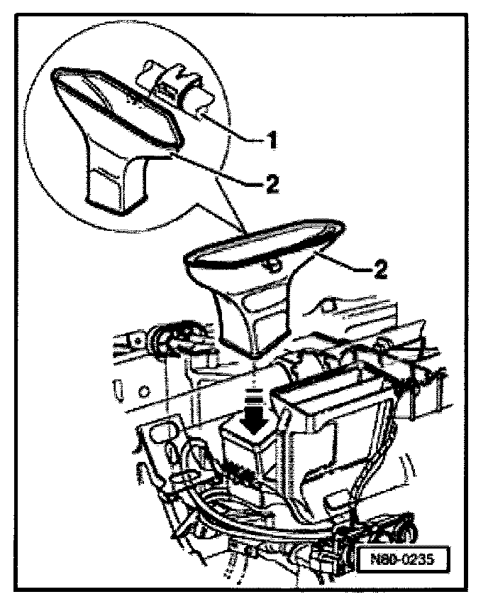 At the same time position defroster duct -2- in instrument panel cross member -1-.