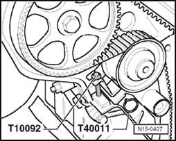 - Tension toothed belt. To do this, remove pin T40011 and remove tensioning bolt T1 0092.