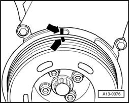 - Position vibration damper to TDC cylinder 1 - arrows-.