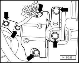- Remove bolts from subframe/engine bracket, subframe/body and subframe brackets/body - arrows - and completely remove subframe.