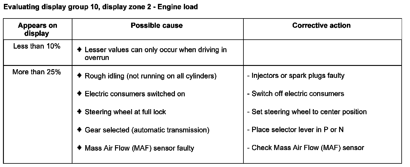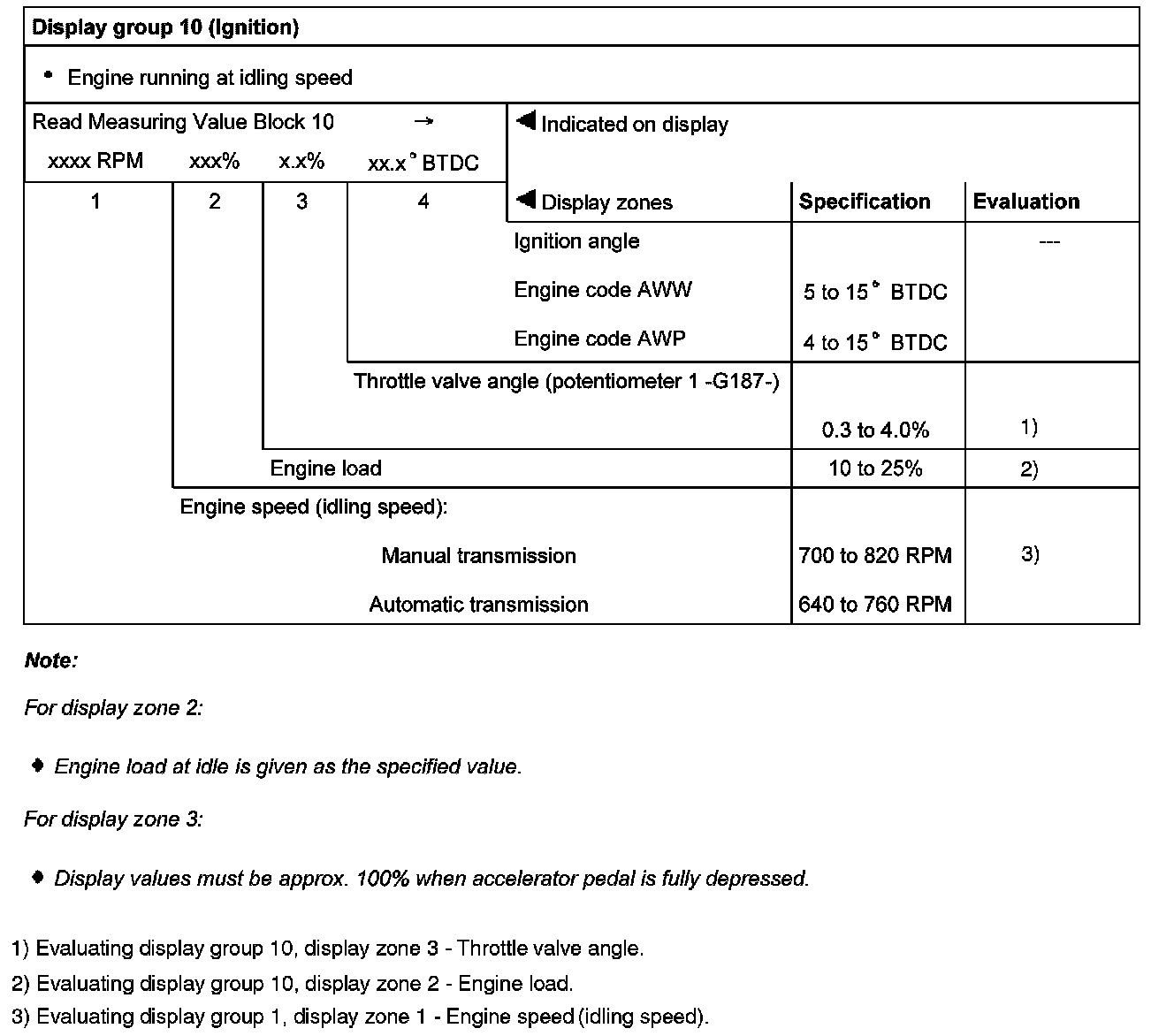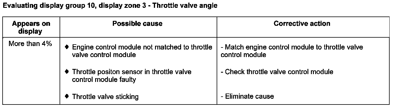 Evaluating display group 10, display zone 3 - Throttle valve angle