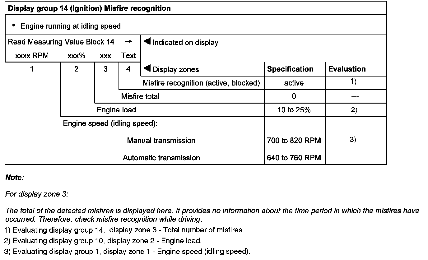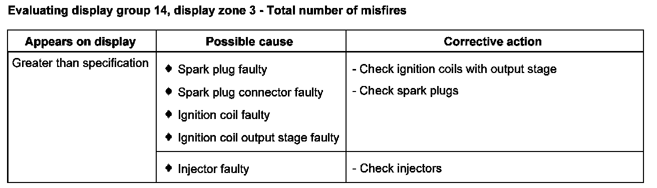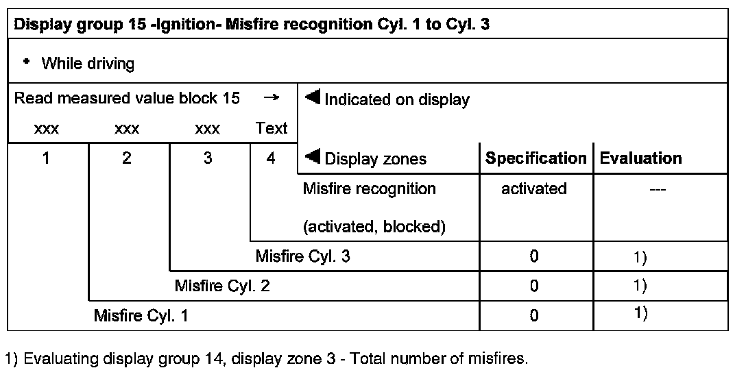 Display group 15 -Ignition- Misfire recognition Cyl. 1 to Cyl. 3