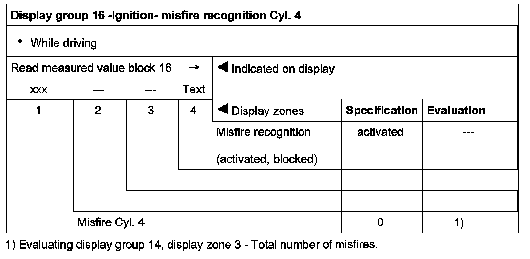 Display group 16 -Ignition- misfire recognition Cyl. 4