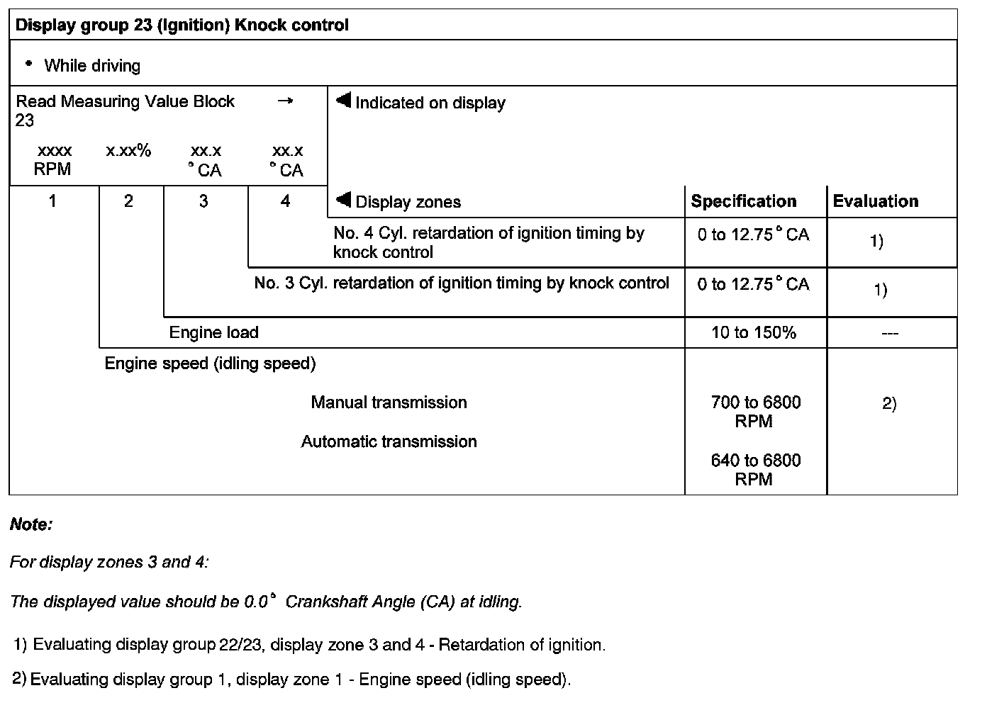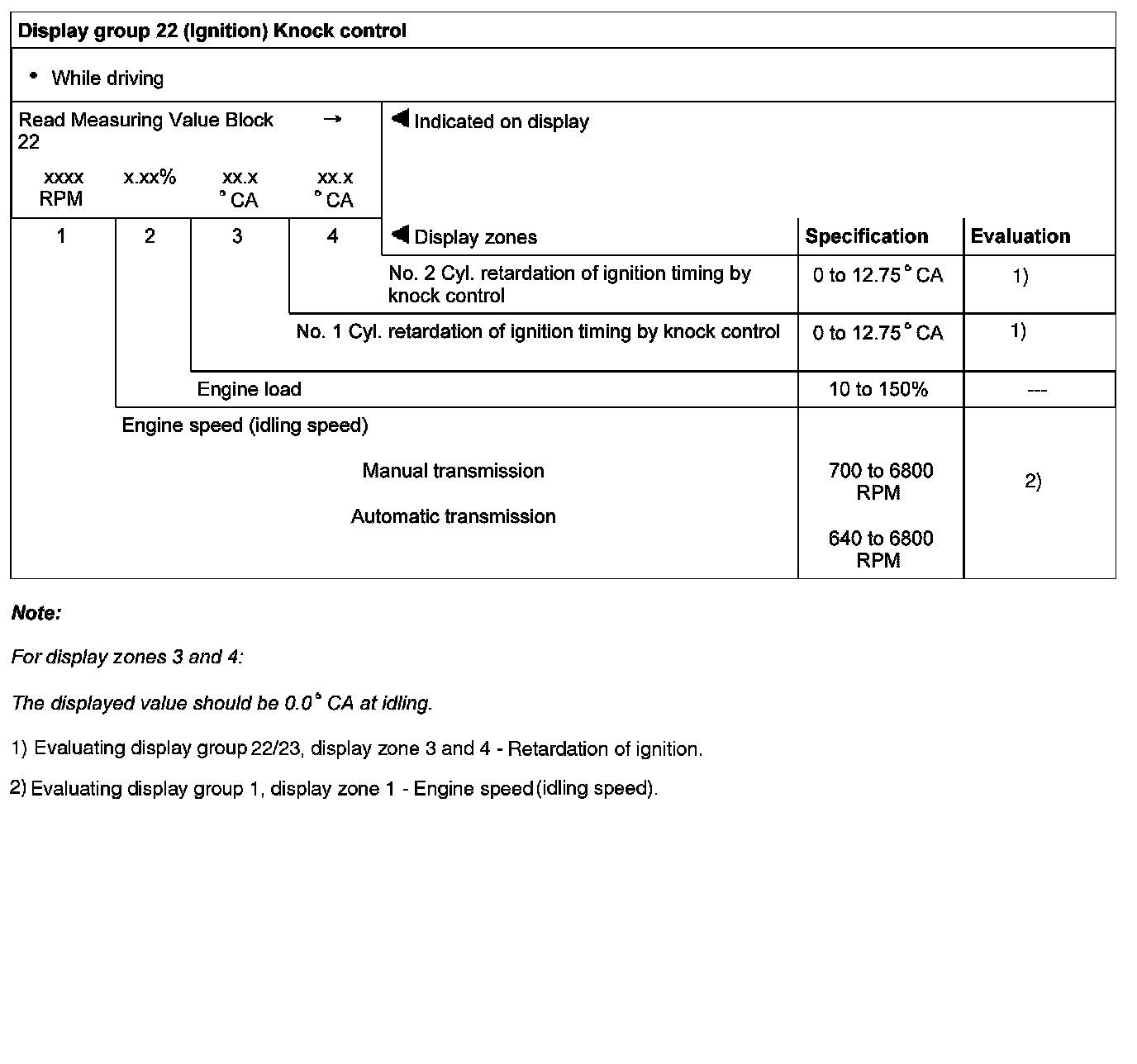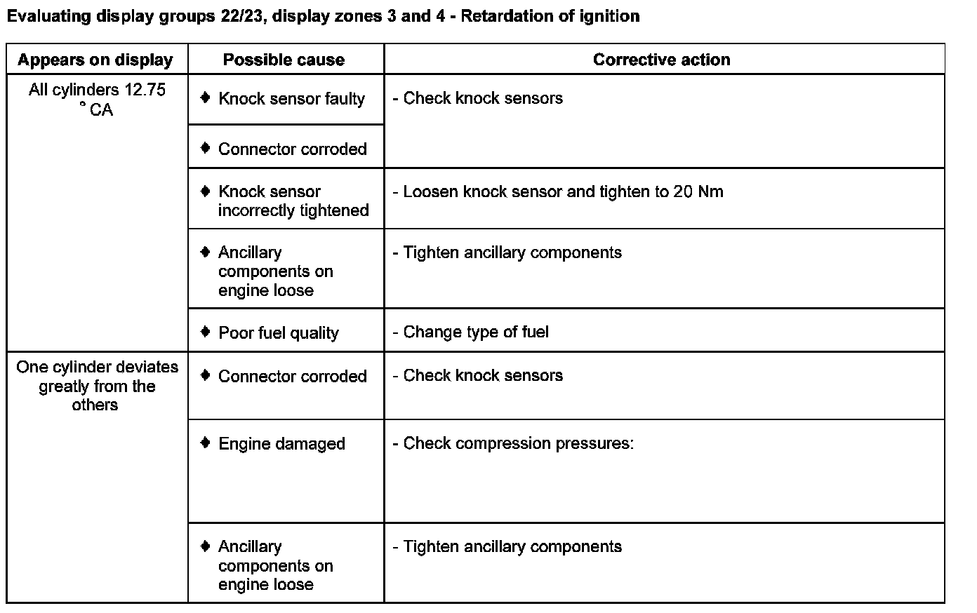 Evaluating display groups 22/23, display zones 3 and 4 - Retardation of ignition