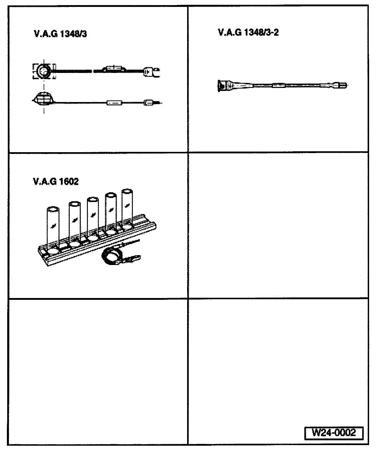 - Insert injector to be checked in a measuring glass of tester for injected quantity VAG1602.