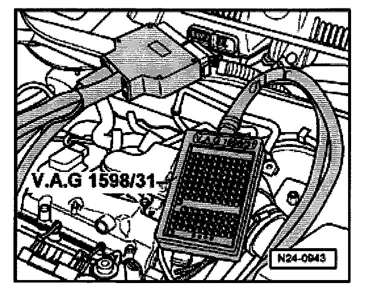 - Connect VAG1598/31 test box to control module wiring harness. The engine control module remains disconnected.