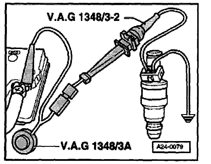 - Connect the second injector contact with auxiliary cable to VAG1348/3 remote control using VAG1348/3-2 adapter cable.