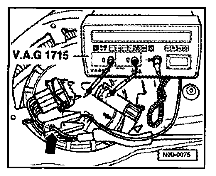 - Connect multimeter V.A.G 1715 to wire -arrow- for contact 1 of 4-pin connector using the pick-up clamp.