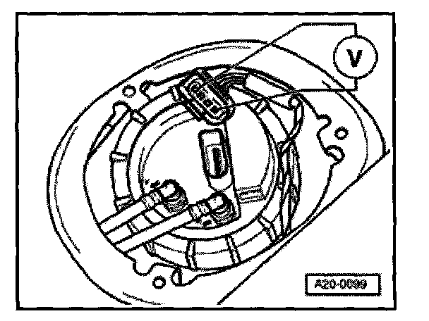 - Connect VAG 1527 voltage tester to outer terminals of connector using adapter cables from VAG 1594 connector test kit.