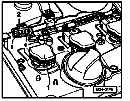 - Disconnect all 4-pin connectors -2- from output stage for ignition coils - 1-.
