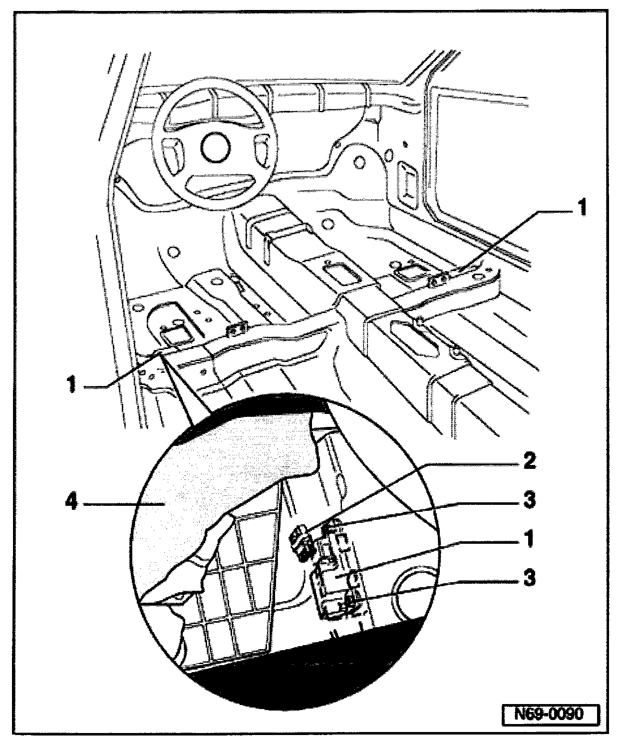 - Remove driver's or front passenger's seat (Airbag - use adapter VAG 5061).