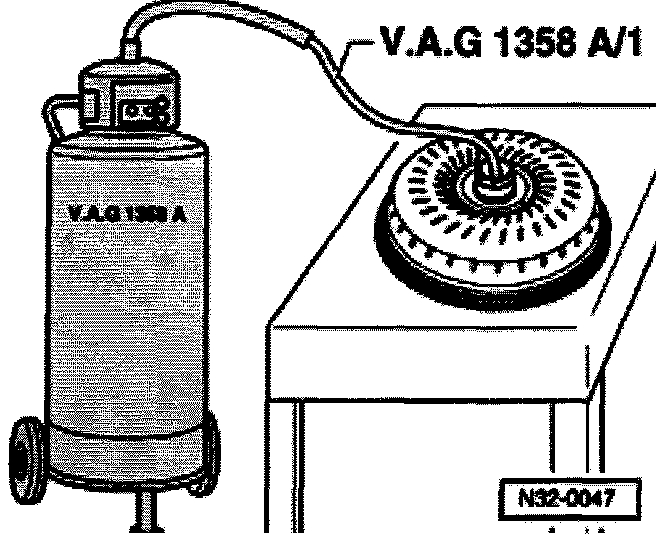 - Extract ATF from torque converter using VAG 1358 A and probe VAG 1358 A/1.