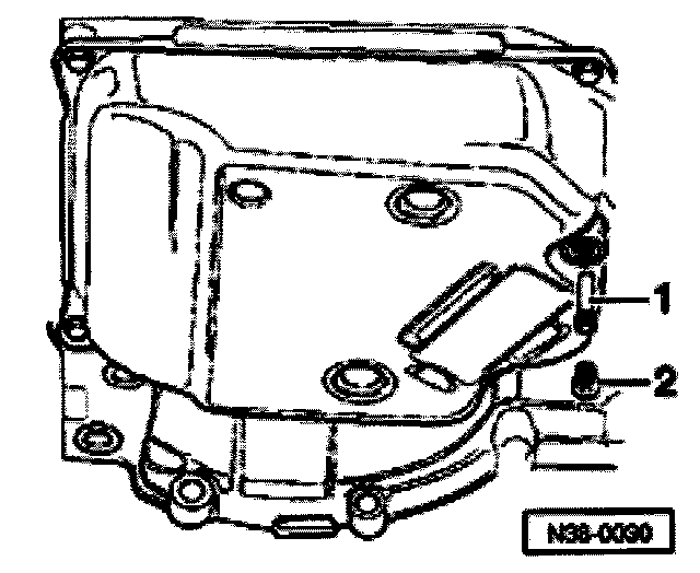 - Remove overflow pipe -1- and allow ATF to drain.