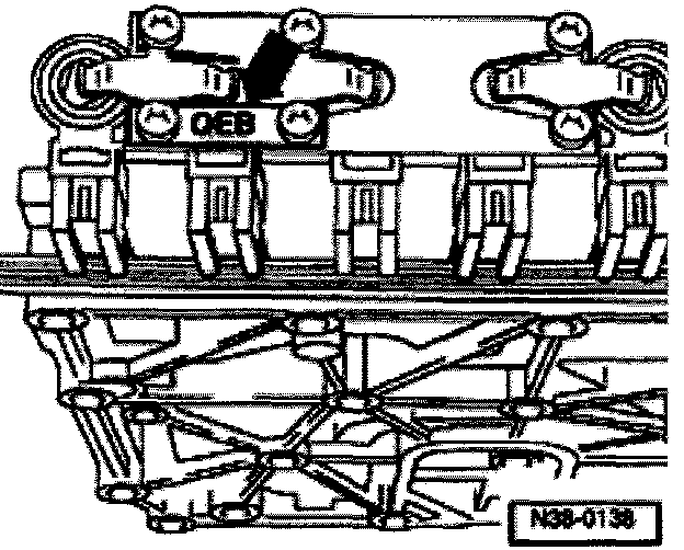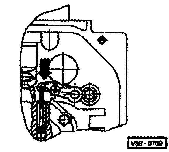 - Push operating rod with manual selector valve into valve body as far as stop (direction of arrow) and tighten bolt to 4 Nm.