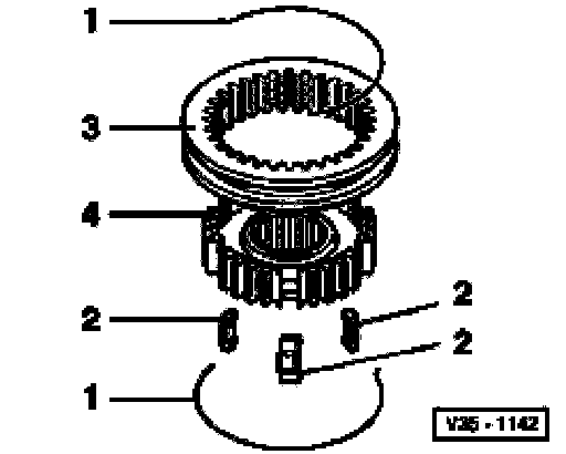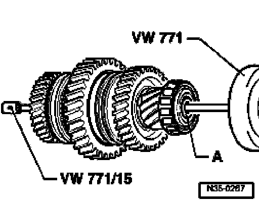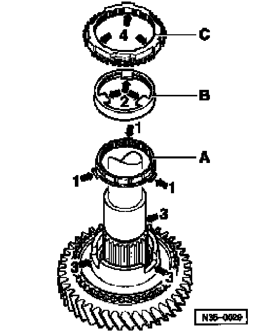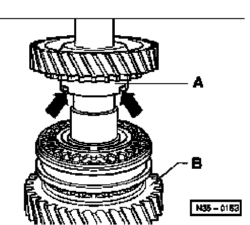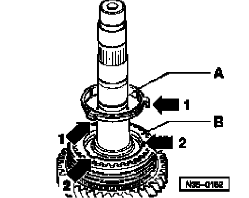 ^ Place inner ring -A- on 2nd gear wheel.