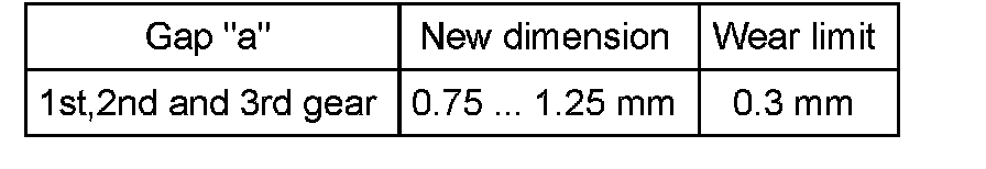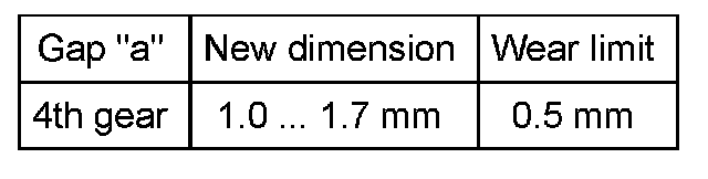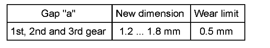 ^ Press synchro-ring onto gear cone and measure gap "a" with feeler gauge.