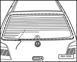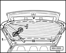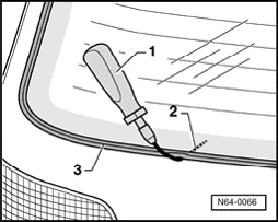 - Insert guide needle - 2 - under sealing lip - 3 - using handle - 1 - and knock through adhesive bead (use side area on lower edge of rear window).