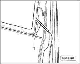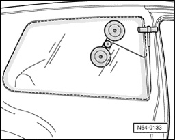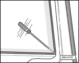 - Push cutting cord through adhesive sealant into vehicle interior using awl (from V.A.G 1474).
