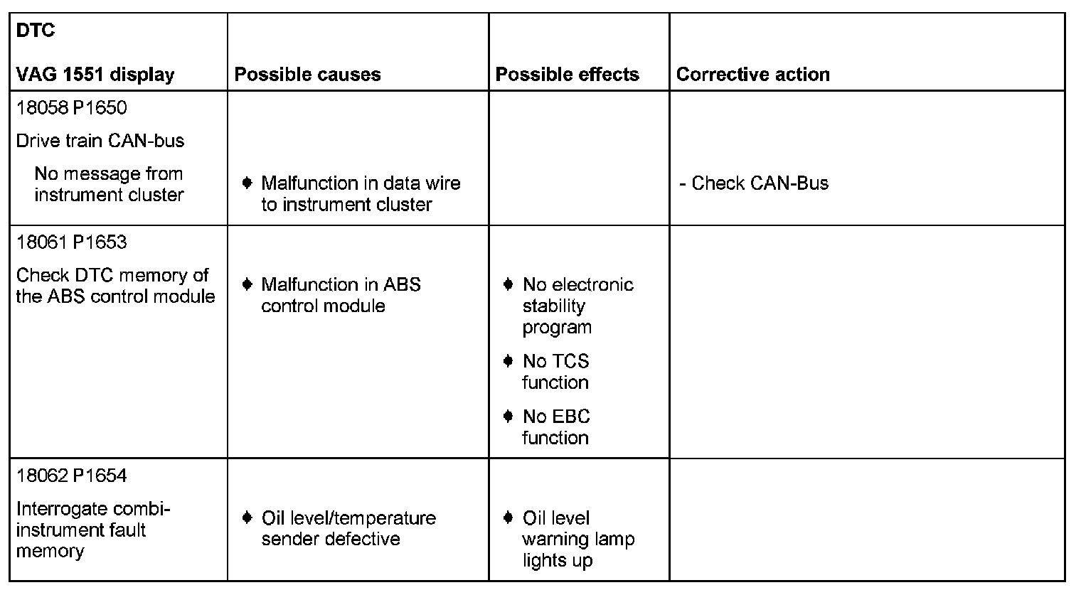 DTC P1650 - P1654: