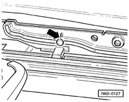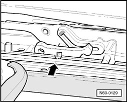 Guide rail pin must align with marking (pin) on guide rail - arrow -.