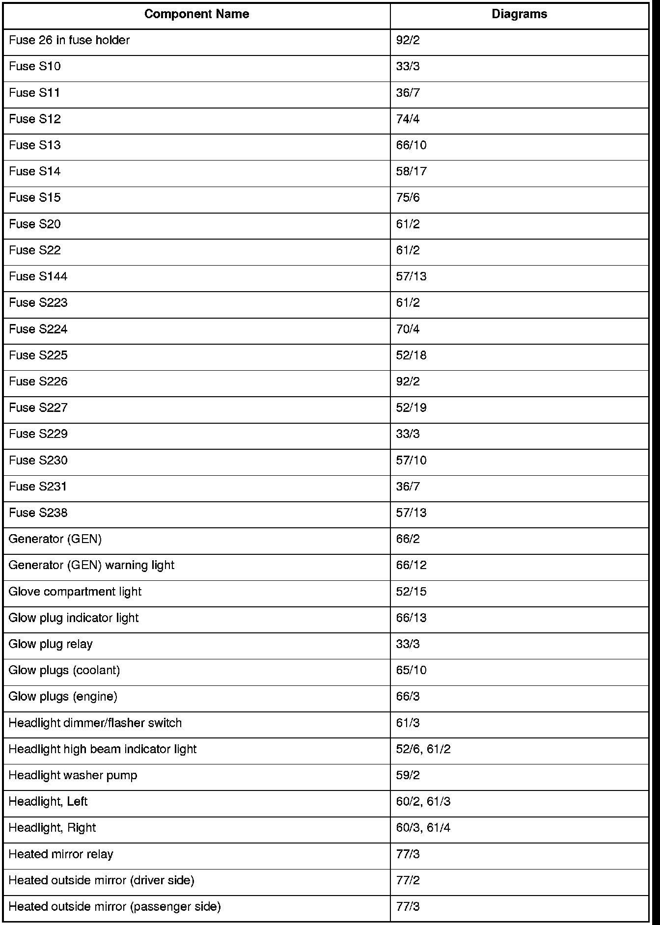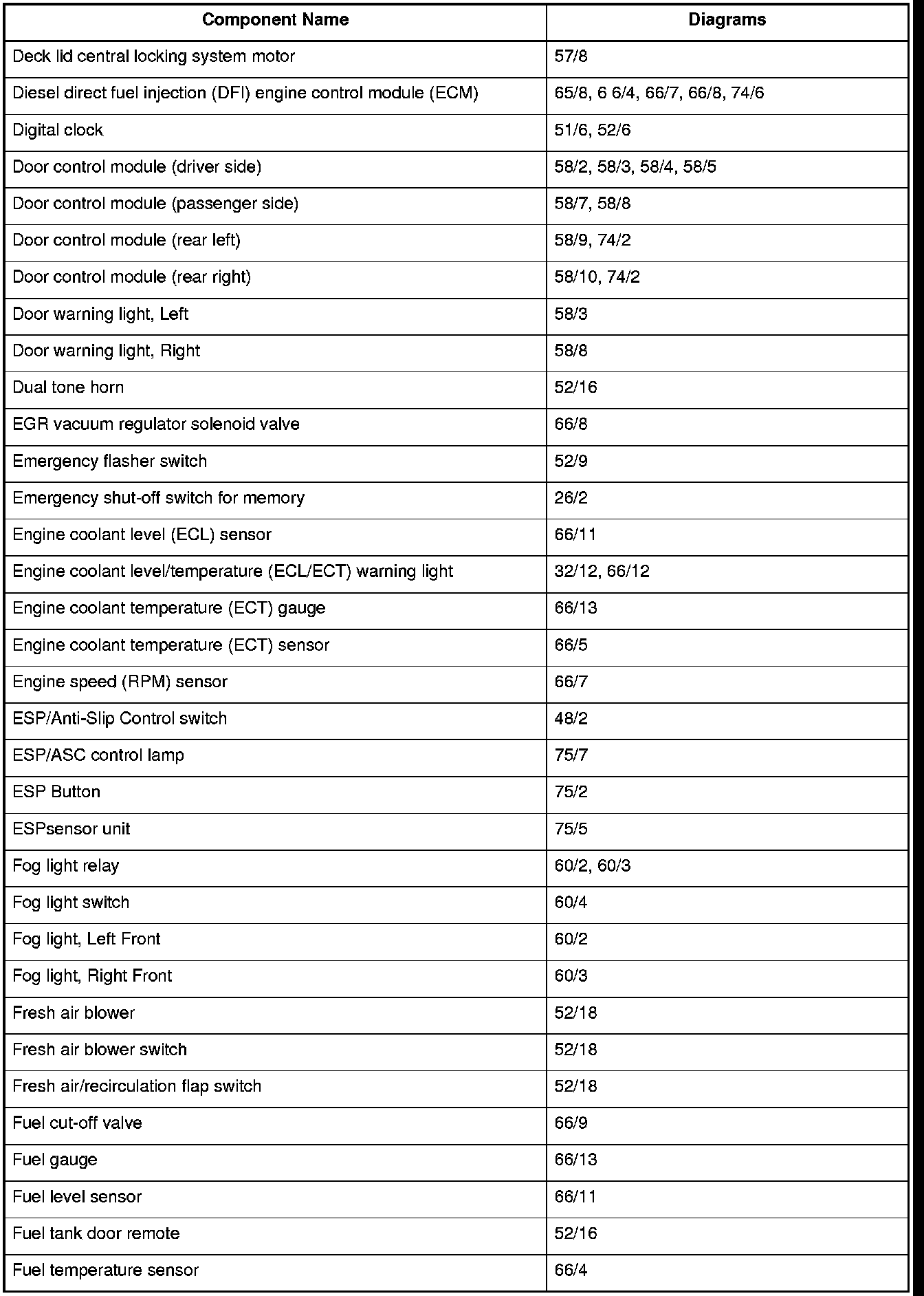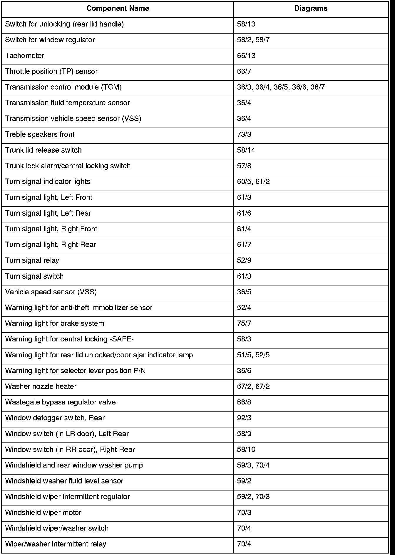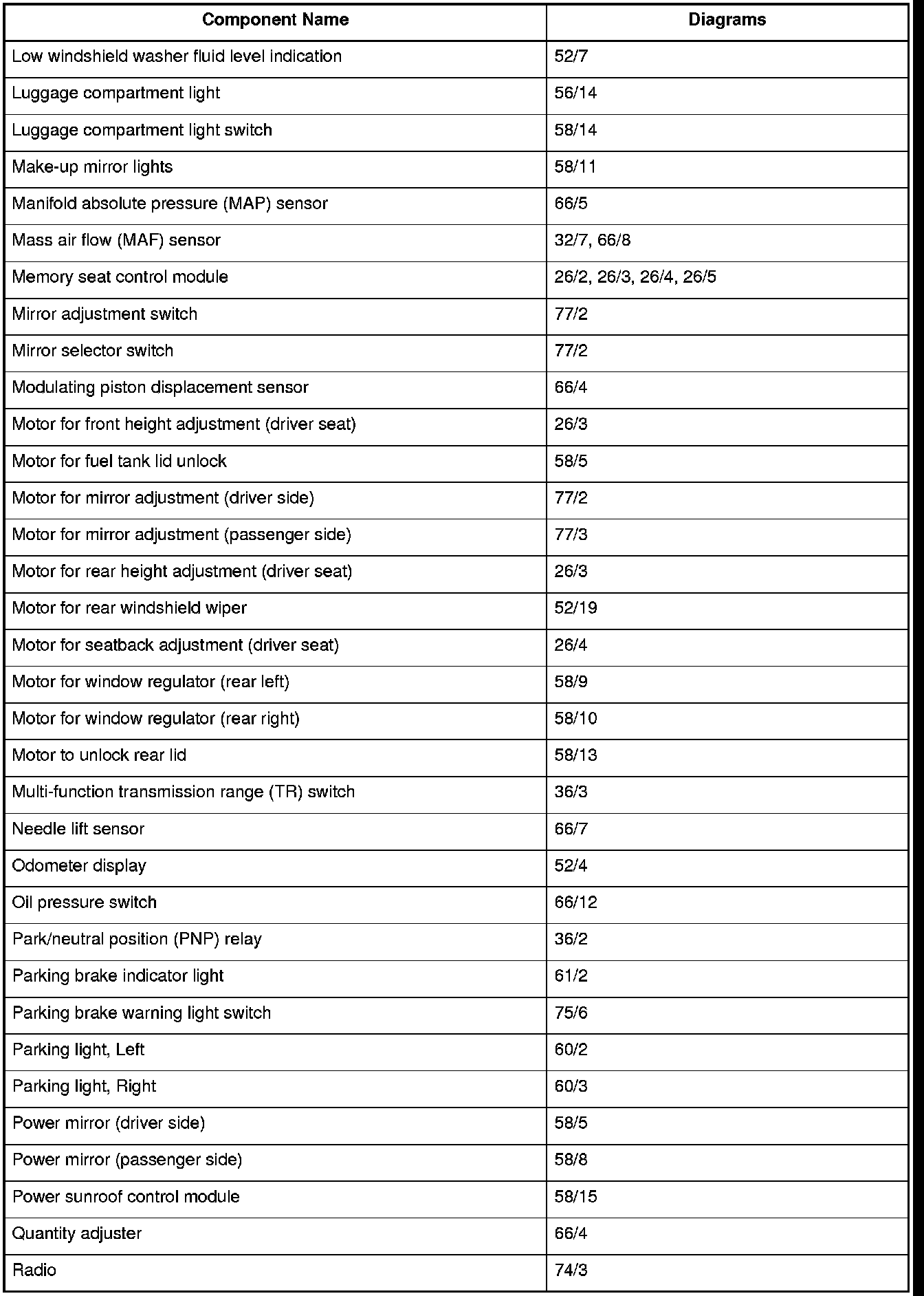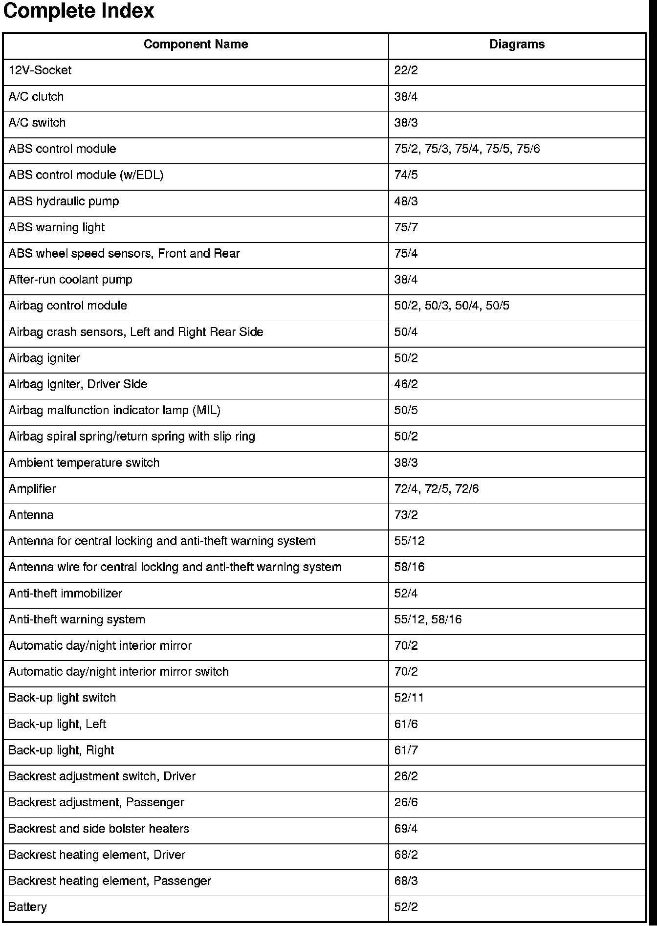 Master Diagram Index