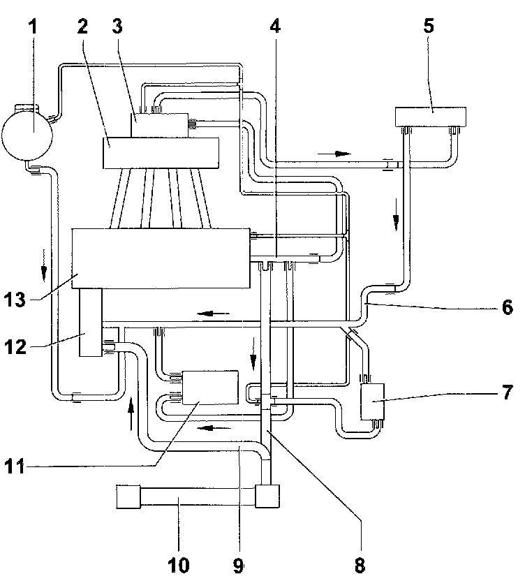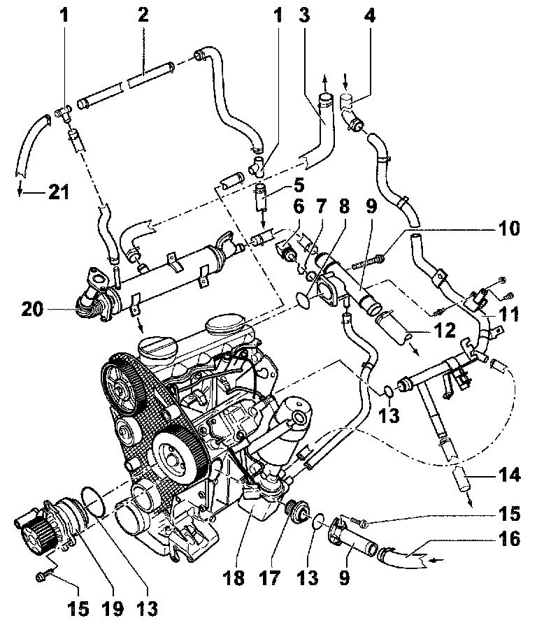 14. To expansion tank, lower part Coolant hose connections, diagram
