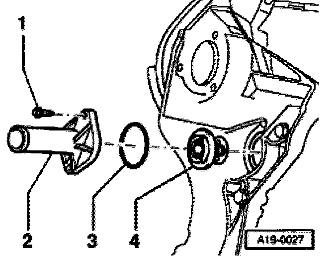 - Remove bolts -1- of connection -2- and remove connection -2- along with thermostat -4-.
