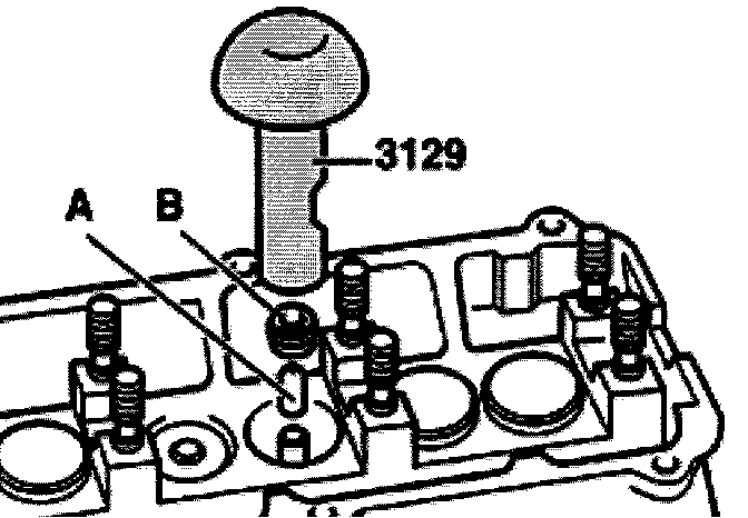 - Place supplied plastic sleeve -A- on appropriate valve stem. This prevents new valve stem seal -B- from being damaged.