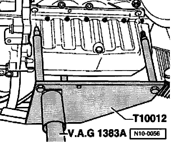 - Slightly lift engine/transmission assembly using VAG 1 383A jack.