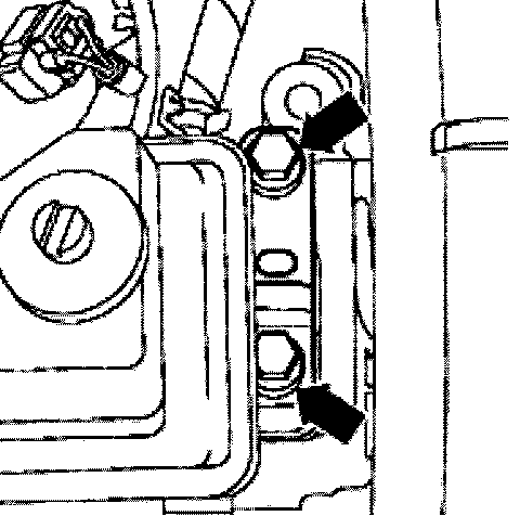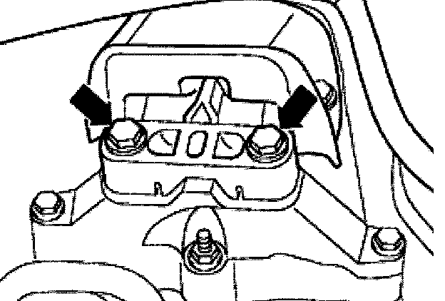- Remove engine/transmission mount from transmission bracket (arrows) working from above.