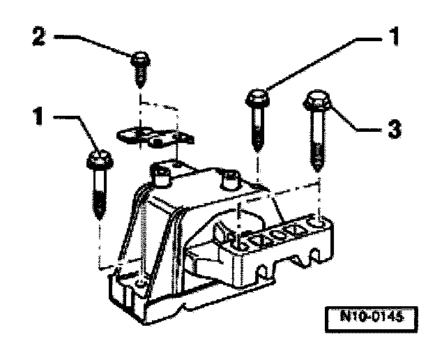 3. Pendulum support to engine 1) 20 Nm (15 ft. lbs.) + 90° (1/4 turn)