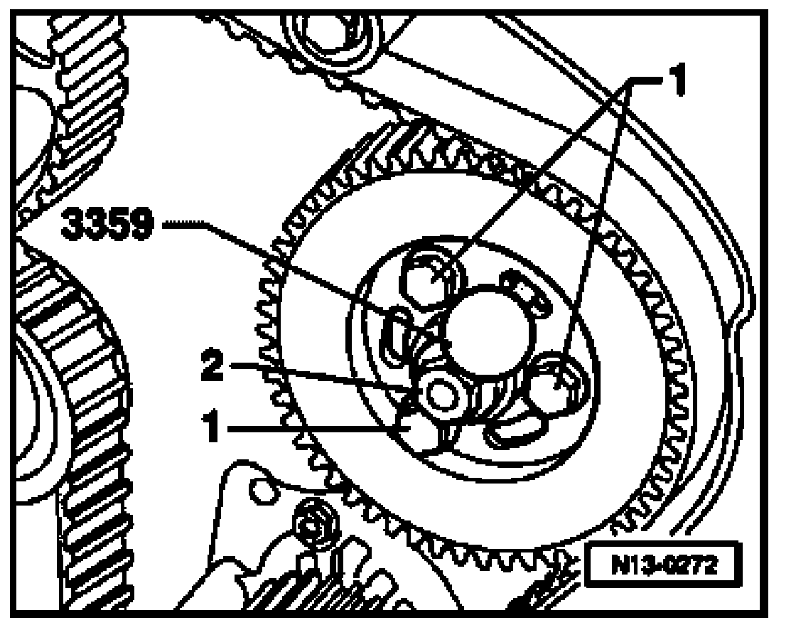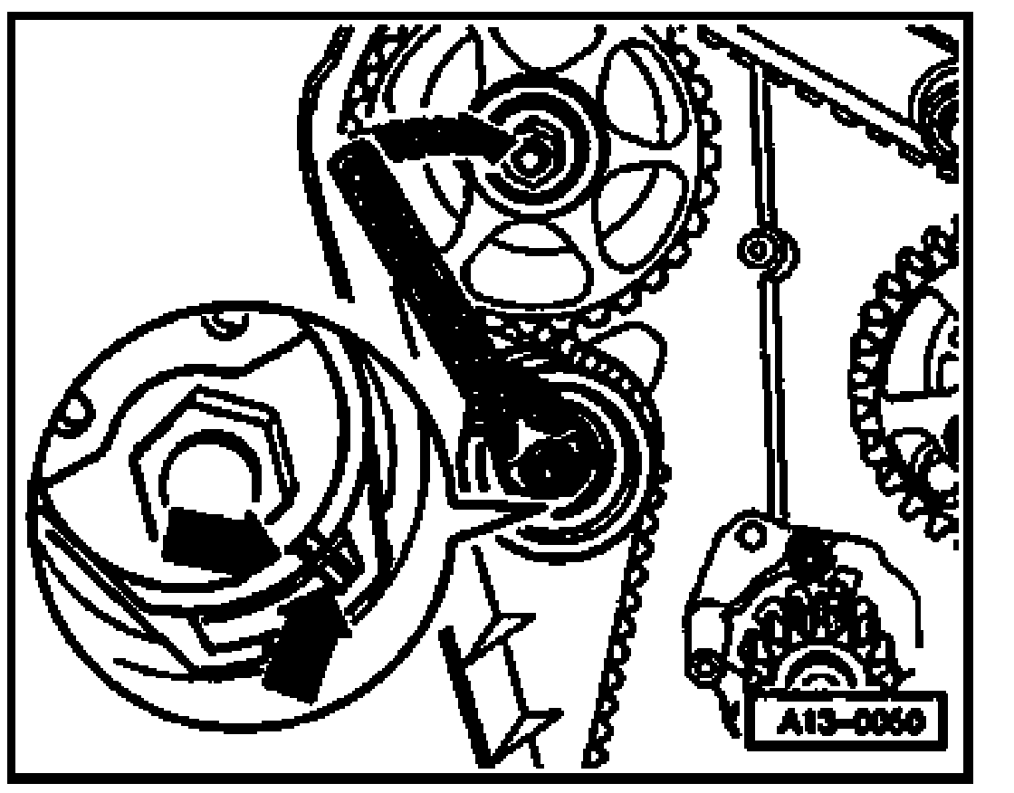 - Unfasten and replace bolts with clearance cut on threaded shaft and point one after the other. (Part No. of injection pump sprocket 038 130 111 A).