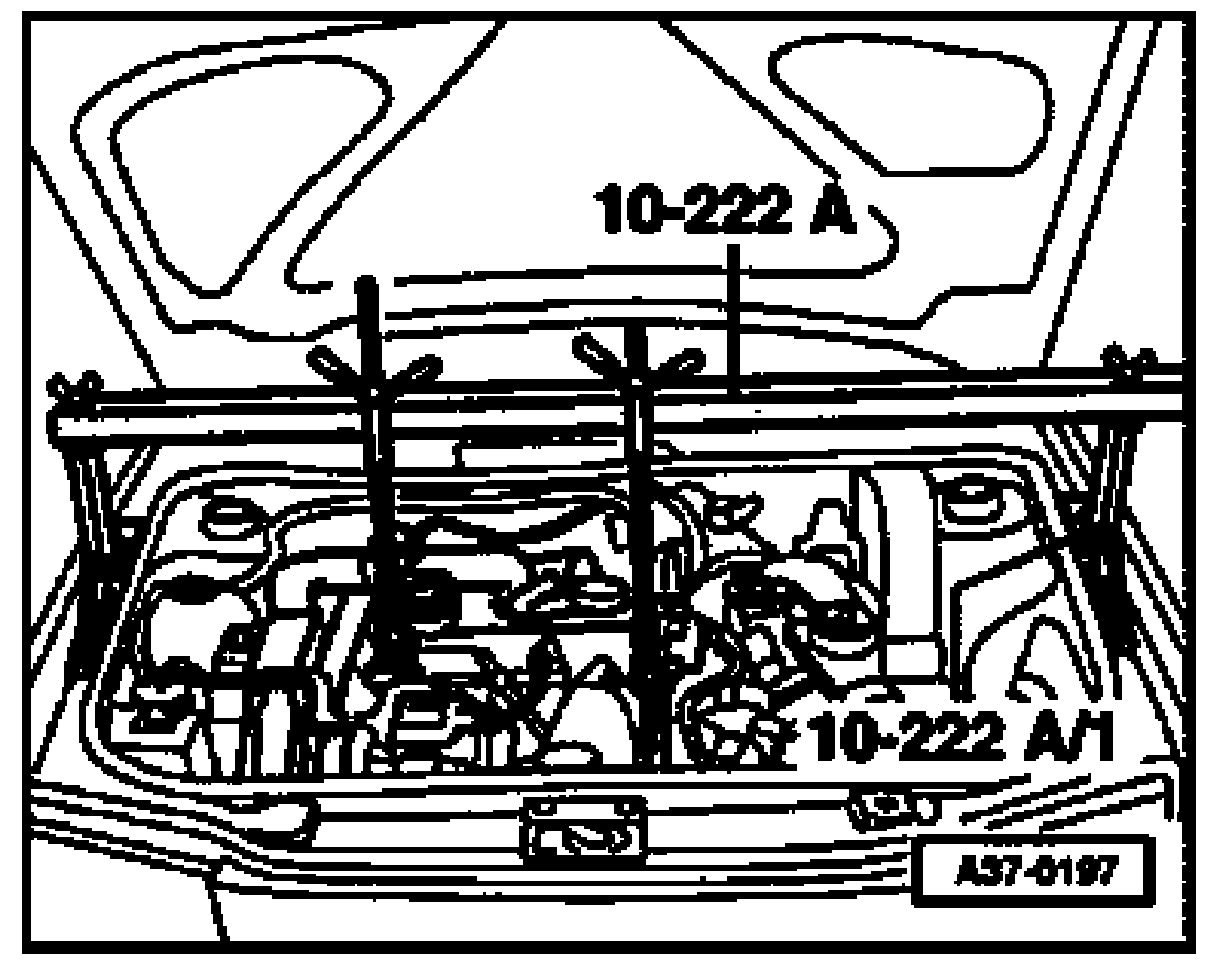 - Tighten engine subframe to engine support, bringing contact surfaces together using engine support bridge 10-222A. Torque specification: 100 Nm.