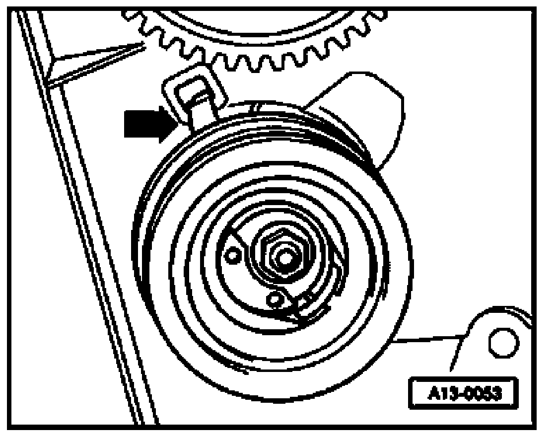 - In case the eccentric was turned past the marks, the tension roller must be completely relieved of tension, and then be tensioned again. If turned too far, the eccentric must not just be turned back again to the passed mark.