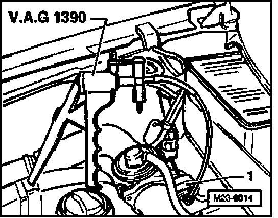 - Connect hand vacuum pump VAG 1390 to vacuum unit.