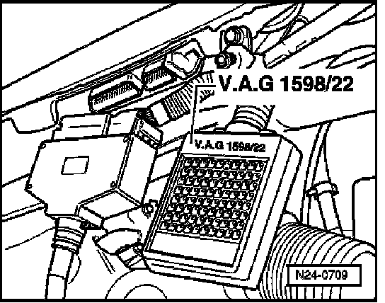 - Connect VAG1598/31 test box at control module wiring harness. The control module for Diesel-Direct fuel injection system is not connected during this.