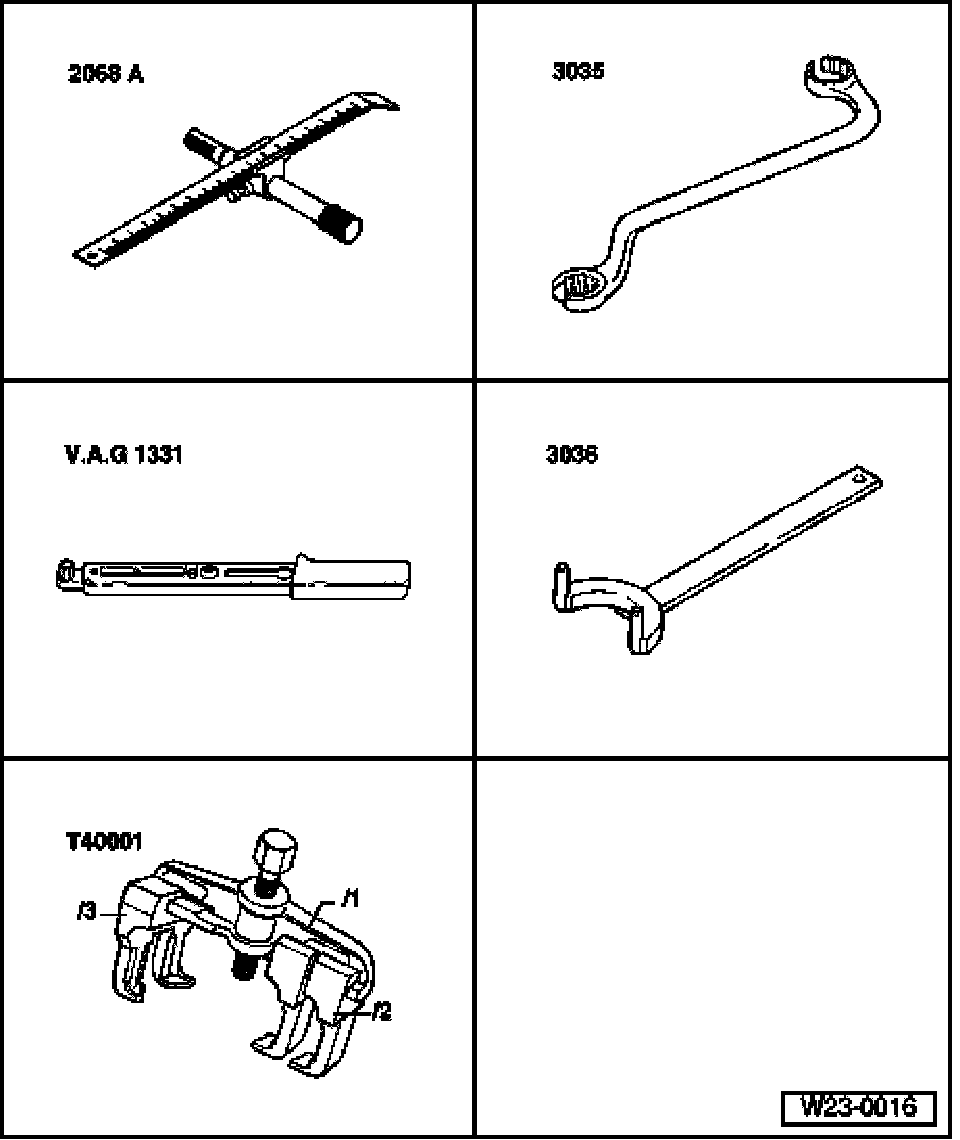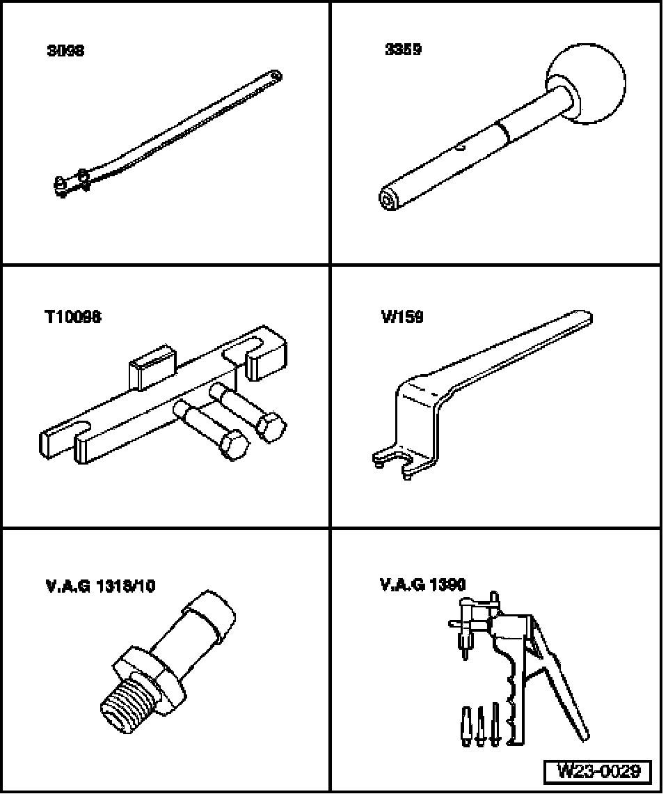 NOTE: The vibration damper/belt pulley, the center and lower toothed belt guard as well as the assembly mounting can remain installed.