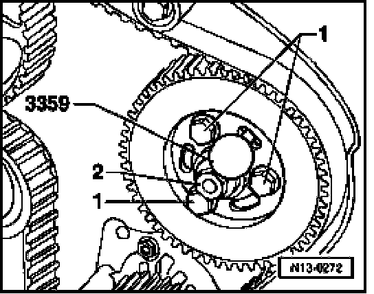 - When doing this, observe the different versions of injection pump sprocket securing bolts, See Fig. 1 .
