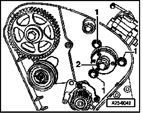 - Relieve toothed belt tension and take toothed belt off camshaft and injection pump sprockets.