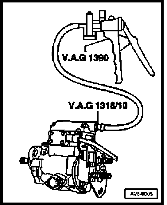 - Thread adapter VAG 1318/10 into return hole in injection pump.