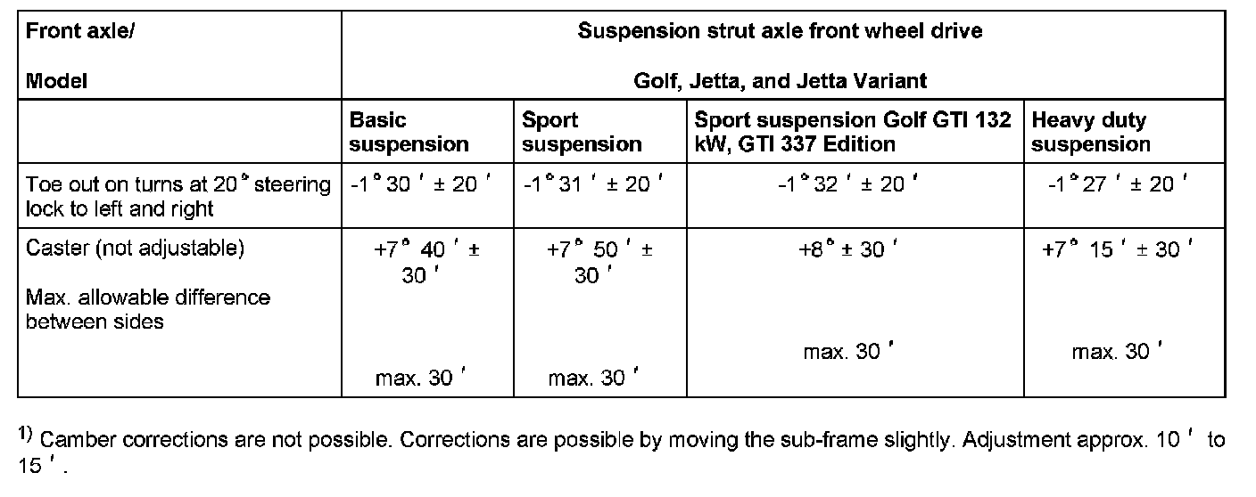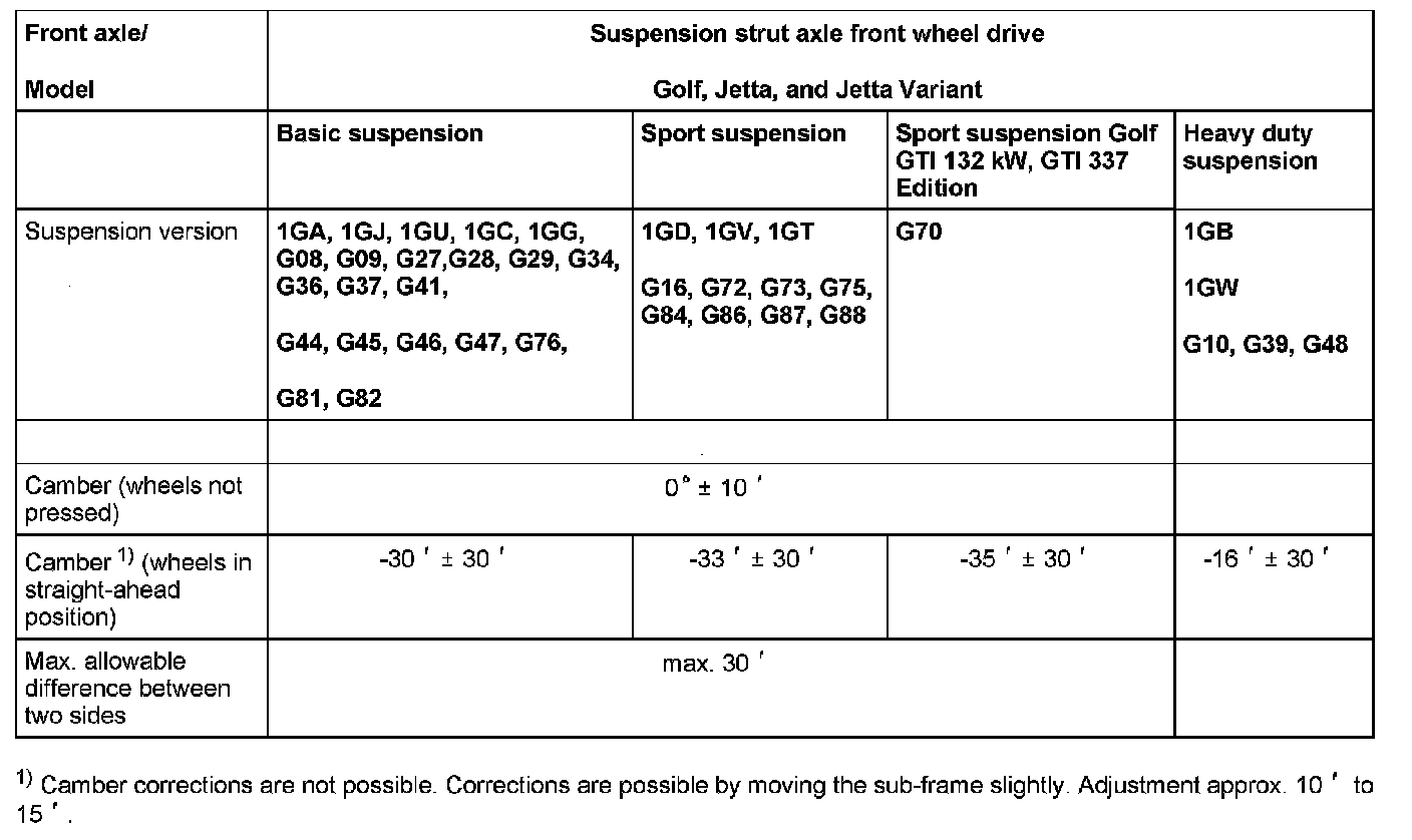 5) Camber corrections are not possible. Corrections are possible by moving the sub-frame slightly. Adjust approx 10' to 15'