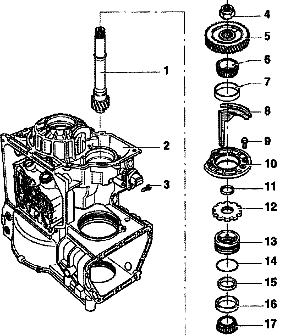 Note: To remove the drive pinion, the selector shaft must be removed after taking out the parking lock, disassembling and assembling parking lock.
