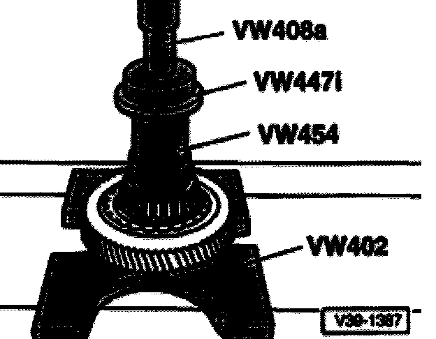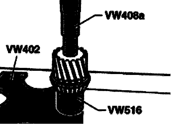 - Insert drive pinion with tapered roller bearing inner race, then drive in outer race.