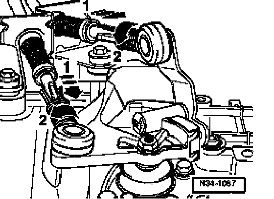 ^ Secure locking mechanism on gear selector cable and gate selector cable by pulling forward until stop (arrow -1-) and then turning to left to lock (arrow -2-).